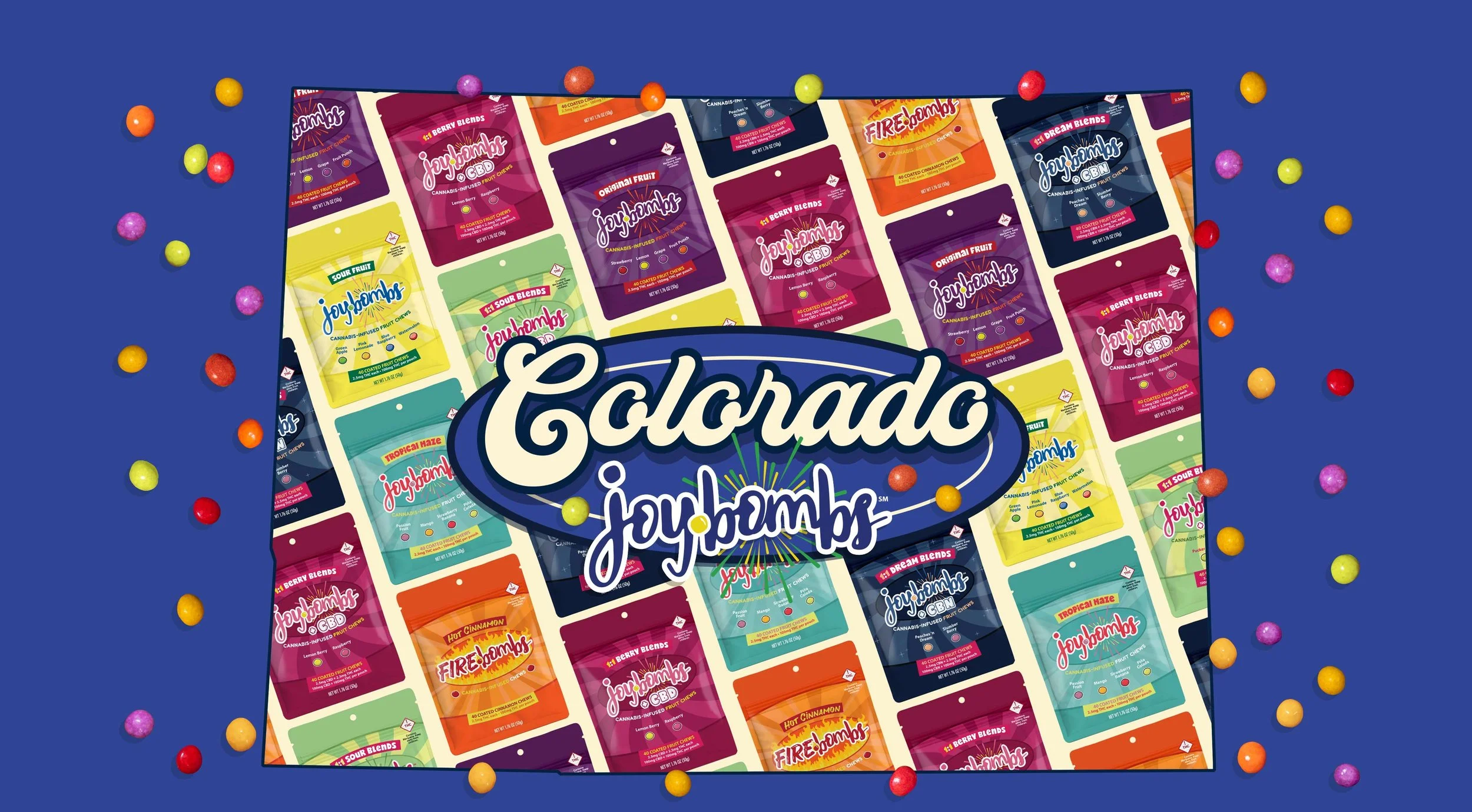 Joy Bombs Fruit Chews are currently available for 21+ sales in Colorado, Massachusetts, Missouri, New Jersey, New Mexico, Oklahoma* and Oregon.
